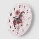 A clock with a cute retro style carousel horse. Drawn in Pretty pink colors with fancy flowers.