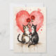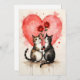 Whimsical Cats Valentine Hearts and Red Roses Kort