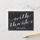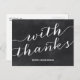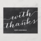 Tack för avslappnad-chic-vykortet innehåller texten "Med tack" i ett typsnitt med visuella skript mot en bakgrund med chalkboard-stil.