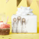 " whimsical and festive wrapping paper design featuring three elegant Christmas angels with flowing robes and delicate wings. The angels have no facial features, giving the design a soft, serene, and timeless feel. Each angel is dressed in pastel shades of white, gold, and cream. The design is seamless and repeating, perfect for wrapping Christmas gifts with a magical and peaceful holiday touch. Order yours today and make your Christmas gifts extra this year!"