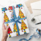 Make your gifts pop with festive flair! This vibrant wrapping paper features a playful pattern of whimsical Christmas trees in bold primary colors—red, blue, and yellow—perfect for adding a joyful twist to your holiday packaging.