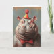 En humoristisk och charmerande porträtt av en hippo klädd som en clown, med en röd båge och en färgstark party hatt. Perfekt för att lägga till en lekfull tryckning till alla rymd- eller kreativ-projekt.
