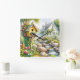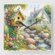 Whimsical Cottage Garden Birdhouse Stream Fyrkantig Klocka