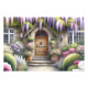 This enchanting scene captures the essence of a storybook cottage garden, bursting with lush blooms and cascading wisteria in soft purples, pinks, and whites. A charming arched wooden door welcomes you through a stone path framed by flowering shrubs, manicured greenery, and dreamy light filtering through the foliage. The overall mood is peaceful, romantic, and full of secret garden nostalgia—perfectly aligned with cottagecore and fairytale aesthetics. The composition draws you inward, evoking a sense of wonder and serenity beneath the floral canopy. AI generated artwork.