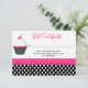 Snyggt presentkort för bageriverksamhet gjort i vitt och rosa med en svart-vit prickaccent. Whimsical grafik av en rosa, vit och svart cupcake prydar vänster fram och baksida av kortet. Texten är redo att anpassas efter dina affärsbehov. Matchande visitkort finns tillgängliga.