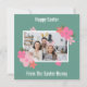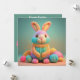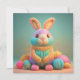 A soft, playful, cuddly knitted bunny in pastel colors with tiny yarn eggs, perfect for Easter greeting cards and spring holiday decor. The design is charming and plush, with a handmade feel and bright, warm, friendly appeal.