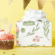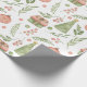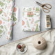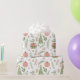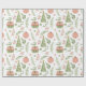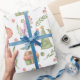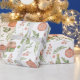 This Christmas wrapping paper features a cheerful watercolor-style pattern filled with festive charm. Scattered across a crisp white background are hand-painted holiday icons: green Christmas trees topped with yellow stars, pink and green gift boxes tied with bows, delicate pink ornaments with circular accents, and sprigs of holly, berries, and assorted foliage. The playful mix of colors and whimsical illustrations creates a lighthearted, joyful design perfect for wrapping gifts with a touch of seasonal sweetness.