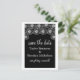 Elegant Whimsical Daisies Spara datum-kort med en kaskad av ömtåliga handritade tusenskönor i vitt på en svart bakgrund. Detta söta och chic florala spara datum-kort är ett vackert val för att tillkännage ett vår- eller sommarbröllop. Lätt att anpassa, lägg bara till detaljerna om din alldeles speciella dag i de tillhandahållna fälten. Klicka på "Anpassa"-knappen för att ändra typsnitt, textfärger eller lägga till/ta bort ytterligare text.