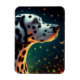 "Whimsical Dalformation Hund" En vackert illustrerad Dalmatien blickar tanklöst in i en magisk natt himmel fylld med lysande fireflies. Hund vita jacka läggs till med klassiska svarta prickar, och dess uttryck är lugn och nyfiket, som om det var inkapslat av den mjuka flimmeraren av ljus runt omkring. Bakgrundsskuggare med små golden- och grönt-glasögon som skapar en drömliknande atmosfär. Den mjuka glöden belyser Dalmatiens egenskaper med värme och elegans.