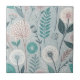 Keramiska plattan i Dandelion Mönster - Ett charmigt, sömlöst mönster med vita, stiliserade blommor och intrikata fröhuvuden för dandelion, parade med botaniska uppgifter om abstrakten. Den muterade paletten med blues, teals, rosa och på en mjuk grått-blå bakgrund skapar ett lugnande, harmoniskt utseende.