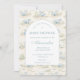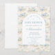 Welcome a little one with this charming storybook-inspired dinosaur design, featuring soft blue illustrations and a delicate vintage nursery feel. The playful dinosaur pattern paired with a clean arched layout creates a gentle and timeless look, perfect for a cozy and joyful baby shower. With its soft color palette and classic storybook aesthetic, this design feels warm, inviting, and effortlessly adorable—ideal for celebrating a baby boy or a whimsical dino-themed event.