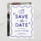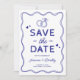 Förtjusande på charmen från vårt visuella, handdragna, räddar datumkortet från bröllop. Varje kort är ett konstverk med roligt blå doodleillustrationer, band gräns, kärlek hjärtan och bröllop ringar. Designat på en vit bakgrund och anpassad med fotot är de här korten mer än ett meddelande - de är det första kapitlet i din bröllop-artikel.