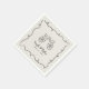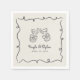 A fun whimsical choice in wedding napkins for a light hearted couple, this retro trendy design has a quirky wavy frame with a doodle illustration of clinking drink glasses tied with bows. The background color is a neutral ivory beige and charcoal gray text and illustration. Napkins are available in 3 sizes; shown here in the cocktail size, they are also available in luncheon and dinner sizes. Other coordinating wedding products are available with this whimsical theme.