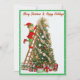 Whimsical Elf Climbing Ladder to Tree Julkort