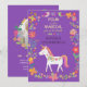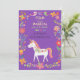 Rak ut ur en saga, denna charmiga enhörningsinbjudan ger livfulla färger och söta illustrationer för att lysa upp vilken födelsedagsfirande som helst.