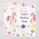 En whimsical enhörning-ämnad födelsedagsfest inbjudan med pastellfärger, lekfulla illustrationer av enhörningar, cupcakes, fjärilar och stjärnor. Designad med en magisk, barnvänlig stil perfekt för en ung flickas firande.