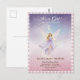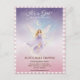 • A magical watercolor invitation featuring a whimsical fairy in a lavender dress with sparkling wings, set against a dreamy pink and purple sky with a crescent moon. This sweet design is framed by a feminine pink gingham border, perfect for a baby girl shower.