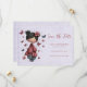 Save the date card with a cute fairy holding a butterfly wand. An adorable unique retro style doll with rosy cheeks. Butterflies flying all around.