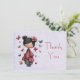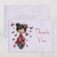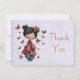 Thank you card with a cute fairy holding a butterfly wand. An adorable unique retro style doll with rosy cheeks. Butterflies flying all around.
