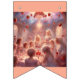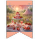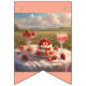 Ai generated whimsical strawberry short cake fantasy birthday bunting with different image on each flag