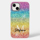 Cute söt chic Ombre rainbow faux glitter monogram I-Phone case. Vackert, modernt och coola skydd för flickor som har klassisk sparsam design. Visa upp din personliga stil, se modern ut, trendig och känn snyggt med en unik design på ett mobilenhetstillbehör eller anpassa den till en annan produkt du vill ha. Lägg till ditt namn med en coola och en modern kalligrafi. Det gör perfektens gåva till en söt 16-årsdag, bröllop, möhippa, årsdagar, babyduschar eller möhippor, valentines day eller som en gåva i allmänhet. Sparke och blank!