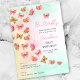 Fira din lilla fjärils första födelsedag med denna bedårande akvarell Fjäril Babyflicka Inbjudan! Denna vackra design, som inkluderar ömtåliga rosa nyanser, flygande fjärilar och en touch av glans, ger din lilla flickas stora dag en magisk känsla. Perfekt för en charmerande, sofistikerad och glädjefull första födelsedagsfirande.