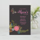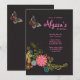 En vacker inbjudan med en fantasifull fjäril och en spruta av färgglada fantasiblommor mot en svart bakgrund. Lämpar sig bra för kvinnor i alla åldrar.