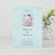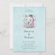 Bröllopsinbjudan med en magisk bild med pastell färgade fjärilar i en burk.
