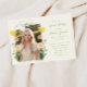 The invitation is adorned with a delightful watercolor frame featuring a vibrant array of spring flowers in soft pastel colors. This hand-drawn whimsical green frame is accentuated with an elegant bow, adding a touch of playful sophistication that captures the essence of a blooming garden.