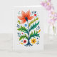Send a beautiful, heartfelt message to your loved ones with this enchanting folk art greeting card. The front cover showcases a magnificent, symmetrical floral tree design, complete with a bright orange main blossom, intricate green leaves, and a charming, naive illustration style. The light canvas texture background gives the card a premium, vintage, and handcrafted feel that the recipient will truly appreciate.