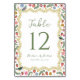 Guide your guests to their seats with this whimsical folk art floral wedding table number, featuring your table number displayed prominently at the center for easy visibility. A decorative border of watercolor folk art florals, greenery, birds, and strawberries surrounds the design, showcasing hand-painted details in shades of pink, golden yellow, blue, red, and green. The illustrated birds and fruit add a playful, storybook-inspired touch, while the graceful floral frame keeps the overall look refined and romantic. The couple’s names and wedding date are placed below in a clean, easy to read layout, creating a balanced and polished presentation. Perfect for garden weddings, spring weddings, and summer weddings, this table number adds a charming and memorable detail to your reception décor.