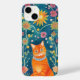 En tabby katt orange omgiven av konstblommor. Digital vattenfärg skapat med AI-genererande software.