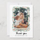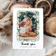 This simple and stylish family or couples Christmas thank you card features your favorite photo, surrounded by a whimsical hand-drawn frame with red and green foliage and holly berries, and trendy black bows. Elegant modern script says "Thank You." There is room for a second photo on the back, along with a personal message to family and friends. This card is a great way to send your appreciation and thanks for all the gifts you received this holiday season!