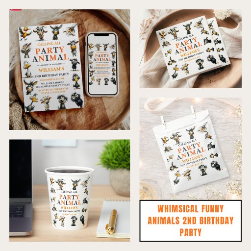 Whimsical Funny Animals 2nd Birthday Party Designad av Oussama