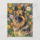 Whimsical German Shepherd i en Blomsterträdgård Vykort