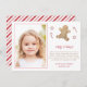 En mycket söt Glad Jul fotokortsdesign med handmålad vattenfärg gjord av pepparkaksgubbe och pepparmyntsgodis. Baksidan har en röd och rosa pepparmyntsrandig design, skapad digitalt av mig.
