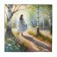 Whimsical Girl Dancing Through Birch Forest Kakelplatta