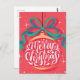 Den här roligten och den skarpa designen har en modern text "God jul" i en populär vit typografi i form av en julbalk på en röd bakgrund med en grönt båge. Anpassa texten på kortets insida genom att redigera texten i textrutan eller ta bort utan text. #party #helgdagar #merry #roligt #julafton #hälsning #postkort #personlig # #