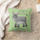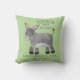 Whimsical grå åsna på grön barnkudde. Inkluderar barnets namn och födelsedatum.