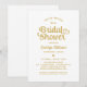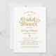 Ljust vitt och rikt guld gör en slående kombination i denna djärva, festliga bröllopsfest-inbjudan med stor, whimsical hjärtskriftstypografi. Den rena vita bakgrunden låter den gyllene texten ta centrum för en festlig, iögonfallande look som känns både rolig och elegant. All text är fullt anpassningsbar med hedersgästens namn och evenemangsinformation.
