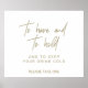 Denna whimsical guldbokstavstil 'att ha och att hålla' skylt är perfekt för ett modernt bröllop. Designen har elegant men rustik gyllene typografi för en enkel minimalistisk look. Matchande drinkkylare säljs separat.