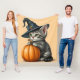 Whimsical Halloween Kitten, Adorable Kitten Witch, Fleecefilt