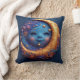 Whimsical halvmåne med ett leende ansikte kudde