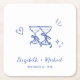 Whimsical Hand Drawn Blue Wine Glasses Wedding Underlägg Papper Kvadrat