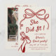 Whimsical Hand Drawn Bow Photo Graduation Party Invitation.
