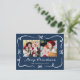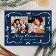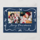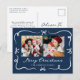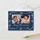 Fira säsongen i stil med det här visuella vykortet för julfoto med två kvadratiska foton omgivna av handritade vita bögar och band. En rik marin bakgrund ställer in "God jul" i ett handskrivet vitt skript, med namn i den förfinade serif-texten. Den omvända sidan har plats för returadressen och ett meddelande om helgdag av anpassningsbar. En tidlös men lekfull perfekt för vykortsdesign som sprider helgdag glädje.