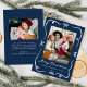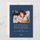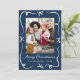 Skicka festive hälsning med det här moderna julkortet som innehåller handdragna vita helgdag och bandets detaljer på en djup marin bakgrund. På framsidan visas lodräts foto under "God jul" i skript för elegant med din familj namn och år, medan baksidan markerar ett andra foto med utrymme för ditt personlig-meddelande. En sofistikerad 2-fotodesign i marin och vit - perfekt för familjer som vill ha en ny snyggt tar på sig det klassiska julkortet.