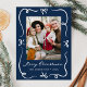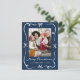 julglädje med det här Whimsical Hand-Drawn Bows Navy Julfoto-vykortet. Bilden ramas in mot en djup bakgrund, accentueras av ett handritat vitt band och med en kurvdesign. Under fotot visas "God jul" i det visuella skriptet med din familj namn och året under. Den omvända sidan ger utrymme för din returadress och ditt helgdag-meddelande, skapar detta som ett tidslöst och elegantens julkort.