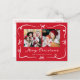 glatta semesterhälsningar med det här visuella vykortet för julfoto med två kvadratiska familjefoller som ramats in av lekfulla, vita, handritade bågar och band. På en livfull röd bakgrund visar designen "God jul" i ett svalt handskript med din familj namn som visas nedan i klassiskt serif-tecken. På baksidan finns utrymme för returadressen och ett meddelande om helgdag av anpassningsbar. En roligt och ett vykort som fångar säsongens anda samtidigt som det skapar lätt att skicka varmt önskemål till nära och kära.