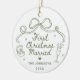 Whimsical Hand Drawn First Christmas Married Ceramic Ornament